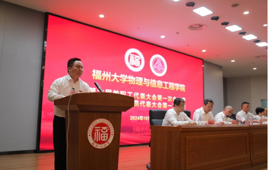 “两代会”的召开表示热烈的祝贺,向辛勤耕耘在学院教学、科研、管理、服务等工作岗位的教职工致以亲切的问候和崇高的敬意。他充分肯定了物信学院工会在教职工思想引领、精准服务教职工、创新开展职工文化活动等方面取得的显著成绩,并希望物信学院工会继续心无旁骛地履职尽责,担当作为,推进工会各项工作再上新台阶,团结和动员全体教职员工,为续写学院事业发展新篇章作出更大贡献!
